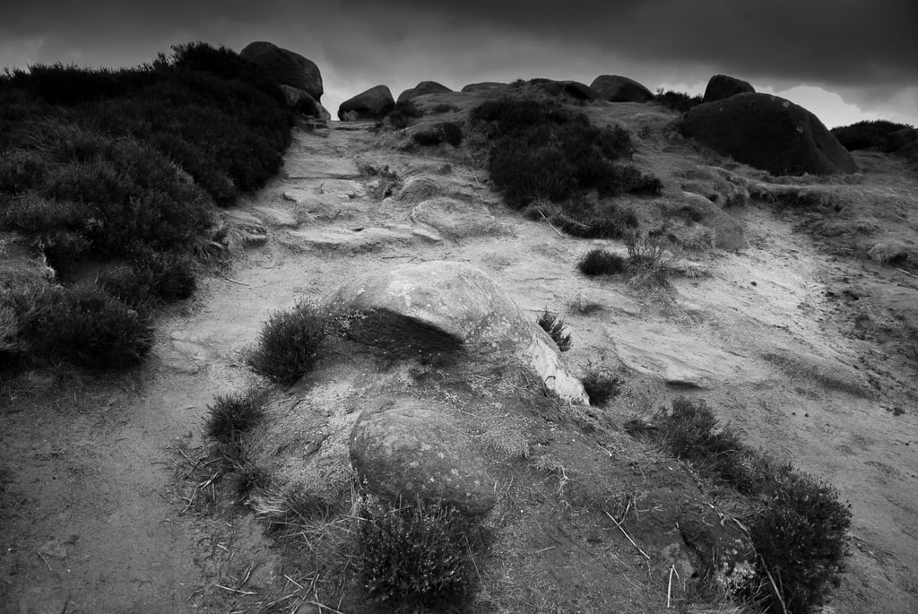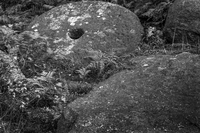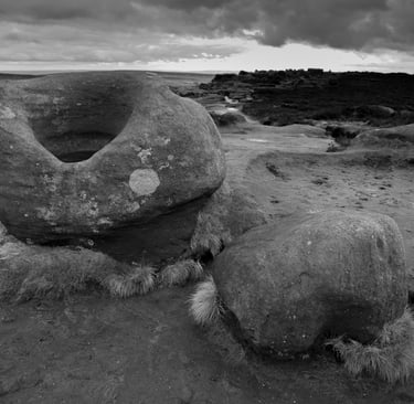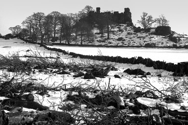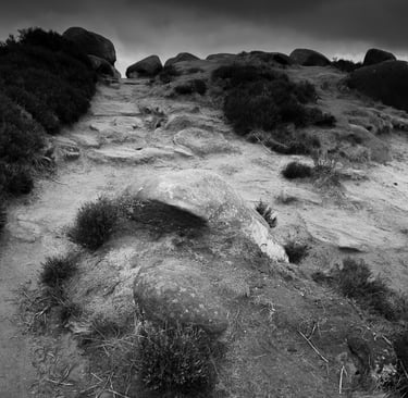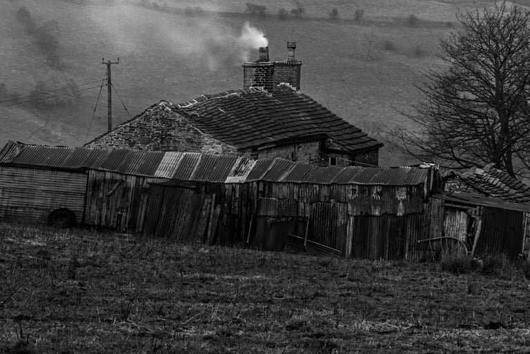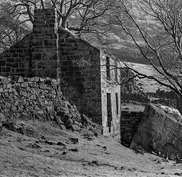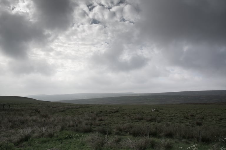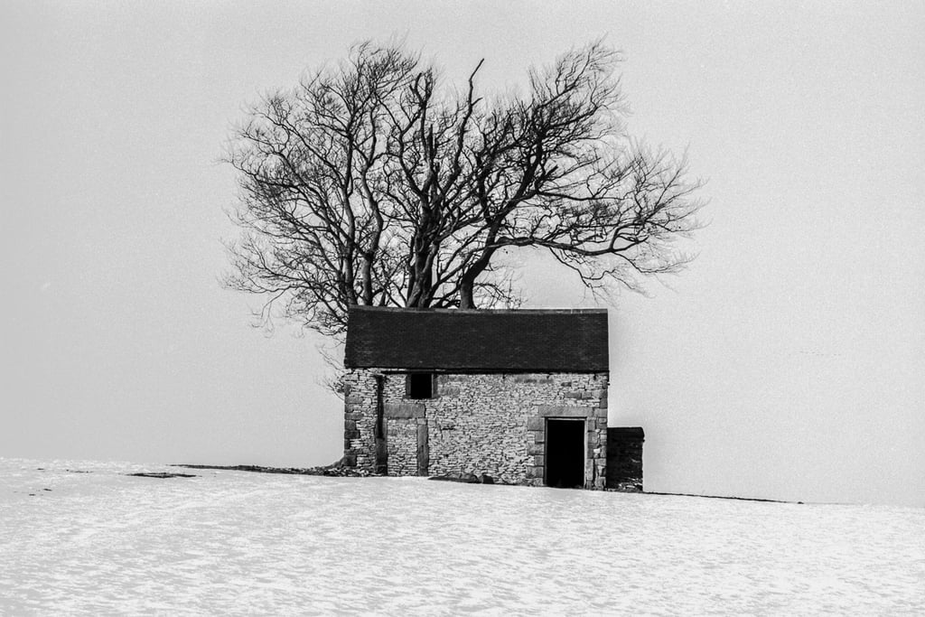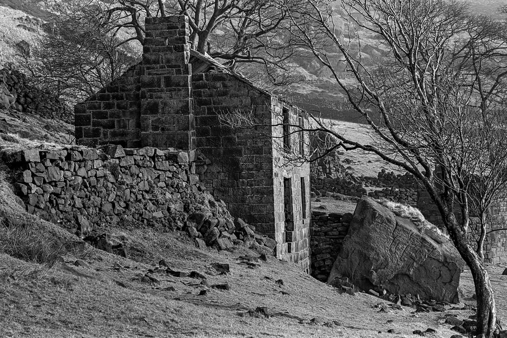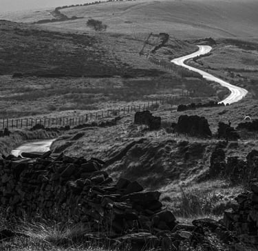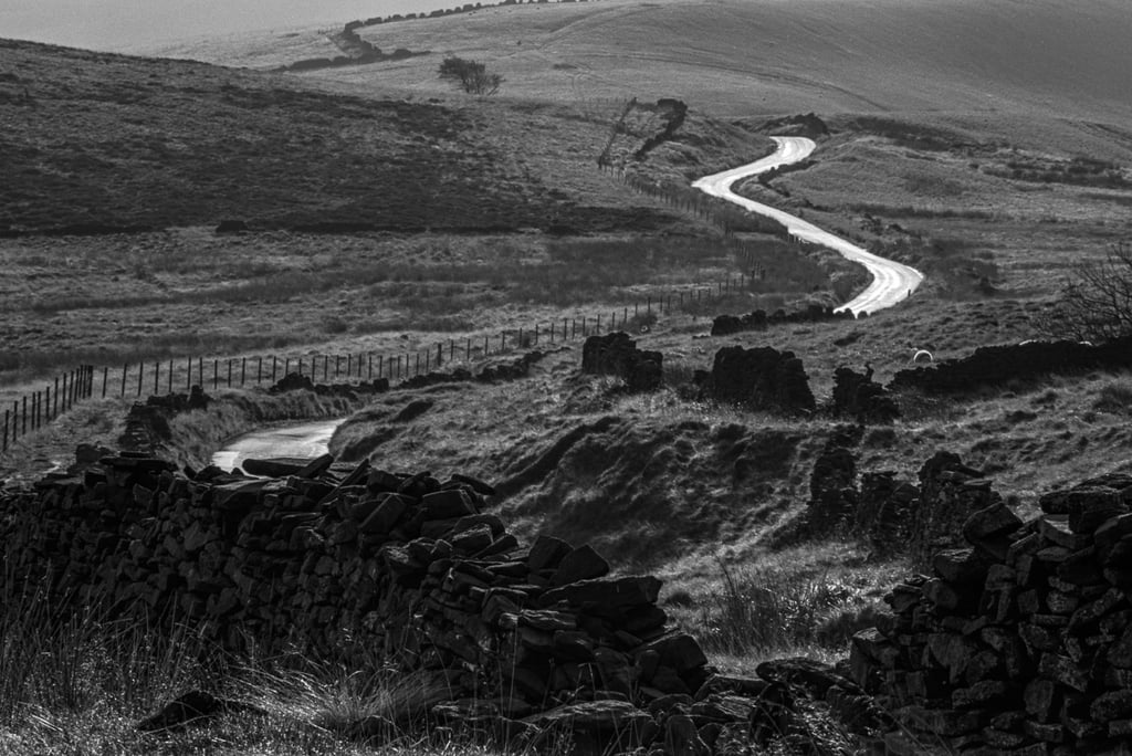 Pendant trente ans, j'ai pris de nombreuses photos dans et autour des hautes collines du Peak District du Derbyshire, en Angleterre. Les photos lumineuses et ensoleillées n'étaient pas pour moi. J'étais attiré par les endroits plus sombres, plus dramatiques. Très souvent, même les jours d'été, j'ai ressenti une sensation d'isolement, d'abandon. Souvent, le seul son était le croassement des corbeaux et le vent constant sur les hautes landes arides. Les moutons paissent mais se dispersent au loin pour trouver de la nourriture. De nombreux murs de pierre n'ont pas été entretenus, ce qui permet aux animaux de se déplacer librement, mais les murs qui survivent offrent un abri important contre le vent, la pluie et la neige.
